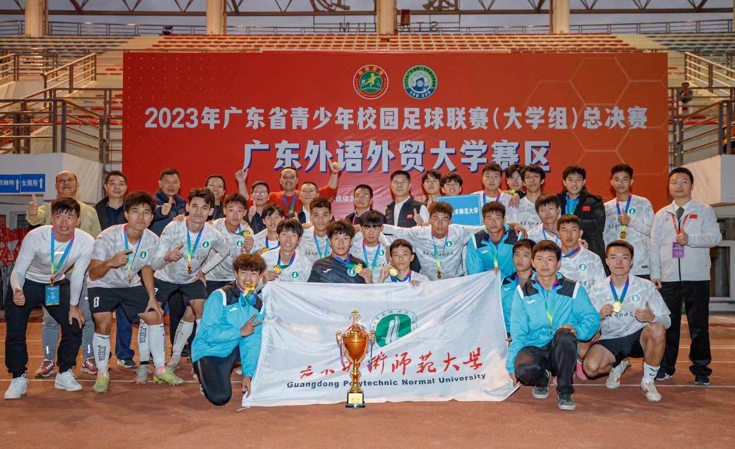 在去年进行的全国青少年校园足球联赛大学男子校园组总决赛上,一支队伍首次代表广东出战,并一举夺魁,这便是广东技术师范大学男子甲组足球队。那场比赛的过程可谓跌宕起伏,队员们回忆起来,仍记忆犹新。当天的天气变化无常,他们的球服先是被汗浸湿,后又被雨淋湿,比赛还因雨量过大一度暂停,经过90分钟常规赛的比拼,双方仍以0:0持平,最终以刺激的点球大战决出胜负。赛后相拥的那一刻,更成为全体队员难忘的瞬间。