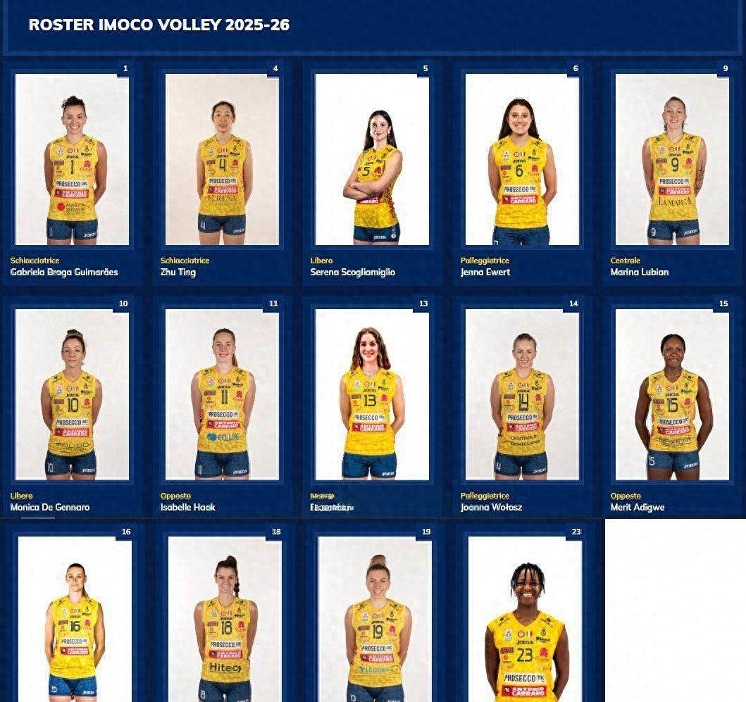 尽管25-26赛季的意甲联赛仍有超过三个月才能开战,但各队伍的组队工作几乎已完成。作为意甲的霸主,科内利亚诺已经在官方网站上发布了下赛季的阵容名单,其中包括了朱婷、加比、达尔德罗普、西拉、哈克、沃洛兹和埃韦特等六名外援。